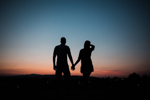 Silhouette of a couple in love