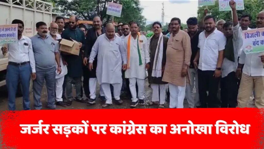 जर्जर सड़कों पर कांग्रेस का अनोखा विरोध, गड्ढों की पूजा कर मांगी राहगीरों की सलामती