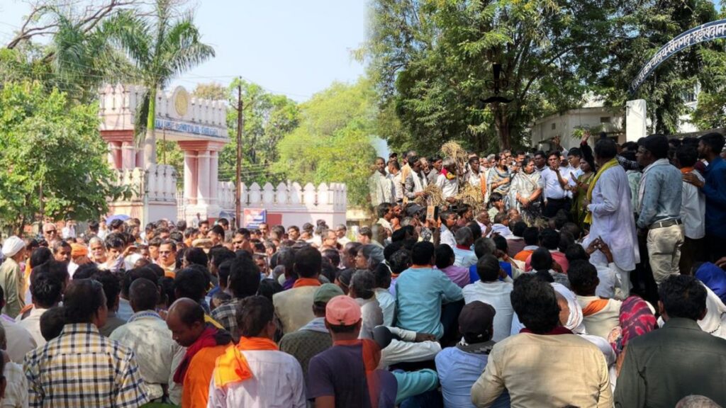 खैरागढ़ में किसानों का फूटा गुस्सा: बे-मौसम बारिश से फसल बर्बाद, मुआवजे की मांग को लेकर कलेक्ट्रेट का घेराव