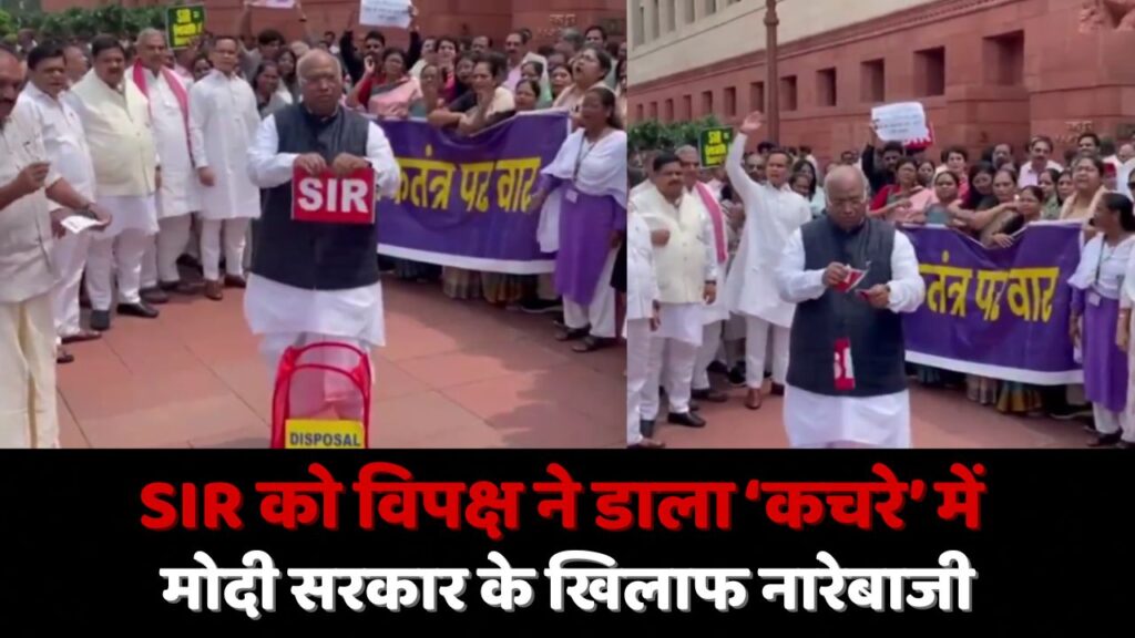 बिहार मुद्दे को लेकर विपक्षी सांसदों ने गांधी प्रतिमा से लेकर नए संसद भवन के प्रवेश द्वार मकर द्वार तक पैदल मार्च निकाला। इस मार्च में राहुल गांधी, प्रियंका गांधी और मल्लिकार्जुन खड़गे जैसे प्रमुख नेता भी शामिल रहे। मकर द्वार पर प्रदर्शन करते हुए उन्होंने SIR लिखे पोस्टर फाड़कर प्रतीकात्मक डस्टबिन में फेंके और “मोदी सरकार हाय-हाय” के नारे लगाए।