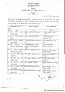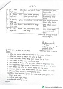 अन्य आदेशों में श्वेता श्रीवास्तव सिन्हा को पुलिस अधीक्षक रेल रायपुर से हटाकर पुलिस अधीक्षक, रायपुर ग्रामीण बनाया गया है। वहीं इंदु अग्रवाल (IPS-2022), नगर पुलिस अधीक्षक आजाद चौक को पुलिस सहायक आयुक्त, आजाद चौक, रायपुर नगरीय पदस्थ किया गया है।