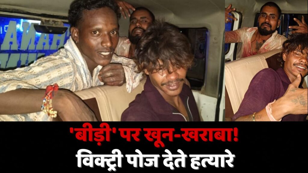 धमतरी। रायपुर के तीन युवकों की बेरहमी से हत्या करने वाले आरोपियों का शर्मनाक रवैया सामने आया है। पुलिस वाहन में बैठाए जाने के दौरान आरोपियों ने बेशर्मी से ‘विक्ट्री पोज़’ देते हुए फोटो खिंचवाई। हैरानी की बात यह है कि इस निर्मम वारदात के बाद भी उनके चेहरे पर जरा भी पछतावा नहीं दिखा। पुलिस ने घटनास्थल से खूनी वारदात में इस्तेमाल खंजर बरामद कर लिया है और इस मामले में दो नाबालिग समेत आठ आरोपियों को गिरफ्तार किया गया है। वहीं, ढाबे में मारपीट का एक वीडियो भी सामने आया है, जिसे इस घटना से जुड़ा बताया जा रहा है।