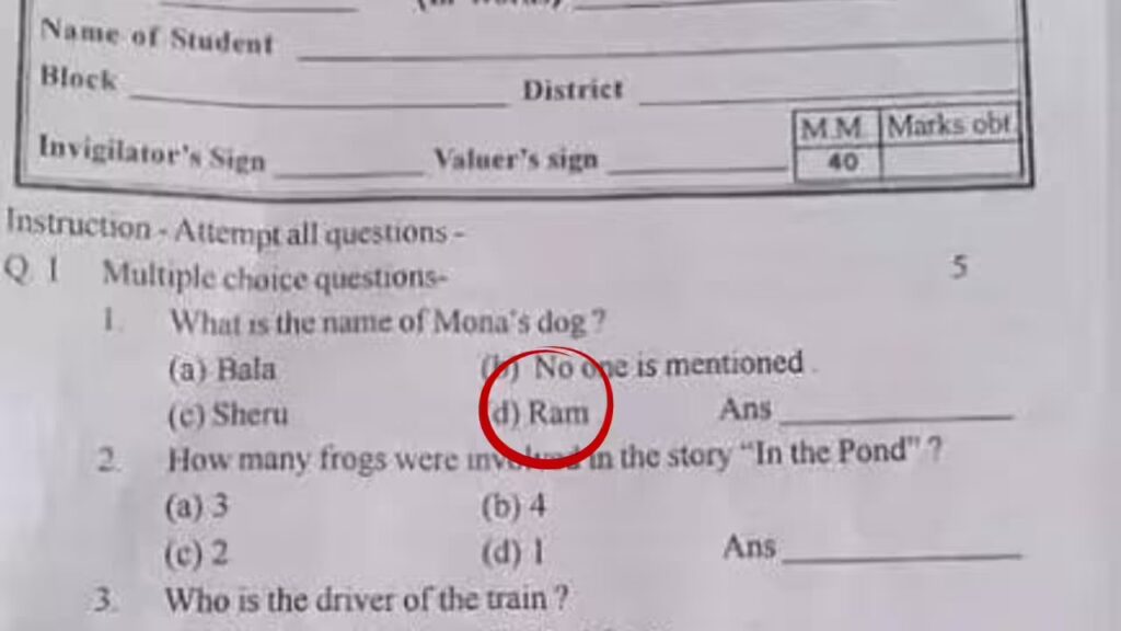 कक्षा चौथी के प्रश्न पत्र में फिर ‘राम’ पर आपत्तिजनक सवाल, एक ही प्रिंटिंग प्रेस से छपाई, विहिप-बजरंग दल ने खोला मोर्चा