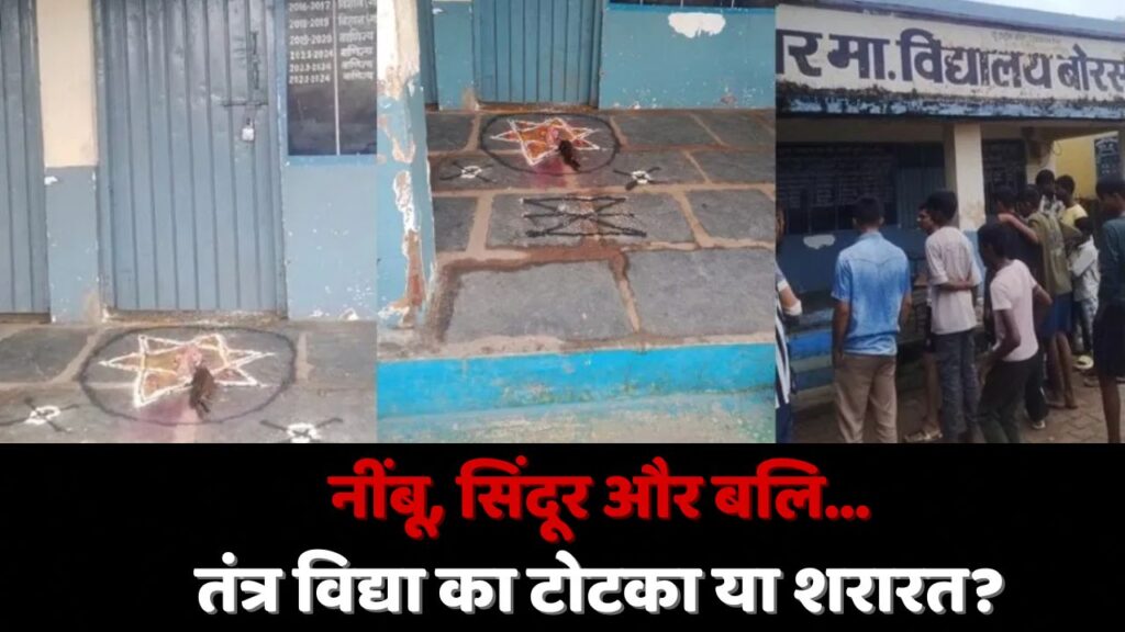जानकारी के मुताबिक, 5 सितंबर की सुबह जब स्कूल खुला तो शिक्षकों और छात्रों ने स्टाफ रूम के दरवाजे पर खून से सना पक्षी, नींबू, सिंदूर और रंगोली जैसी आकृतियां देखीं। यह नजारा देखकर सभी घबरा गए। तुरंत शिक्षकों ने इस घटना का वीडियो बनाकर ब्लॉक शिक्षा अधिकारी (BEO) राजेश्वरी चंद्राकर को भेजा।